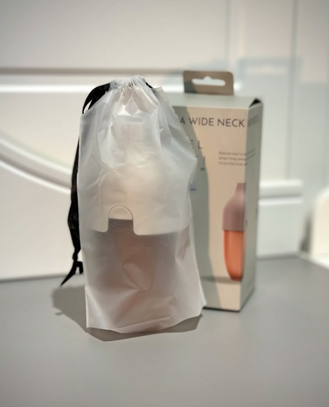 هم بطری و هم سرشیشه این محصول، از جنس سیلیكون و بسیار نرم، منعطف، ضدضربه و شكستگی و با طراحی زیبا، منحصربهفرد و كاملاً ارگونومیك متناسب با توان و حركات انگشتان نوزاد ساخته شده و از دست او سر نمیخورد