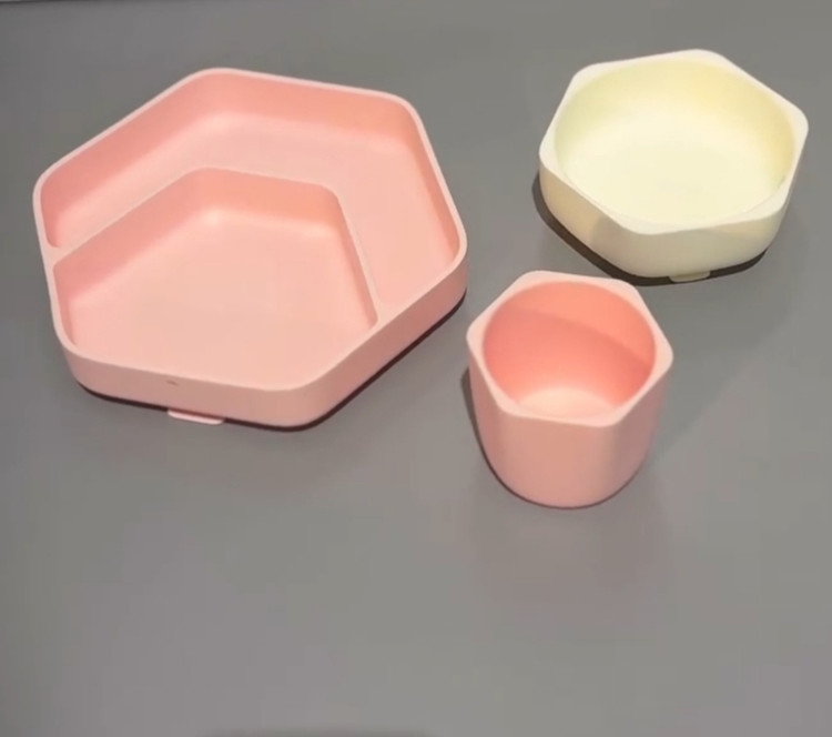 ست ظرف غذا هی اور شی رنگ صورتی HEORSHE سیلیکونی سه تکه اورجینال سرویس غذای سیلیکونی