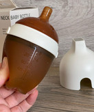 استفاده از شیشه شیر های شیشه ای بهترین ماده طبیعی است اما با توجه به وزن سنگین و احتمال خطر برای کودکان بدنبال جایگزینی ان با یک ماده طبیعی دیگر از جنس شیشه بوده است که سیلیکون های انتی باکتریال بهتر ماده موجود در طبیعت است. لذا تیم طراحی با جایگزینی این ماده بدنبال طراحی یونیک و شکیل و ساده برای بچه ها اقدام کردند و حاصل ان چیزی است که با اخرین تکنولوژی روز دنیا تولید میشود.
