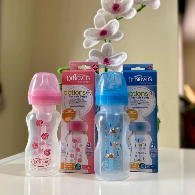 . شیشه شیر آپشن پلاس Wide Neck دکتر براون Dr Brown’s مناسب برای استفاده از بدو تولد کاهش دهنده موثر نفخ و دل درد نوزاد قابل استفاده با نی و یا بدون نی دارای سری سیلیکونی پهن و بسیار نرم سری کاملاً مشابه سینه مادر دارای درب محافظ ایمنی و بهداشتی فاقد BPA (بیسنفول آ) شیشه شیرهای دکتر براون با طراحی پیشرفته و بی نظیر محصولی کاملا ضد کولیک و ضد نفخ است.سیستم داخلی این شیشه با داشتن نی وسط سبب تغذیه نوزاد به طور 100 درصد بدون هوا می شود.سرشیشه ی این شیشه شیر شبیه به سینه ی مادر است و این ویژگی سبب می شود تا تغذیه ی ترکیبی ساده تر انجام شود.